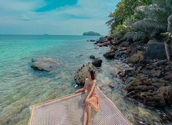 Đi Nam Đảo, đầu tiên mình đi chùa Hộ Quốc, đi xong quay ra mình chọn 1 bãi vắng trên đường đến chùa để tắm và chụp ảnh, ở đây có nhiều bãi vắng đẹp và nước biển trong xanh, sau đó mình đi Bãi Sao. Đầu giờ chiều mình di chuyển xuống An Thới, đi Hòn Thơm vé 150k/1 người, qua Hòn thì tắm biển chụp ảnh và thư giãn, sau khi quay về mình ghé Sunset Sanato ngắm hoàng hôn vé 70k/1 người. Tối về ra bờ kè Dinh Cậu xem người ta câu cá.